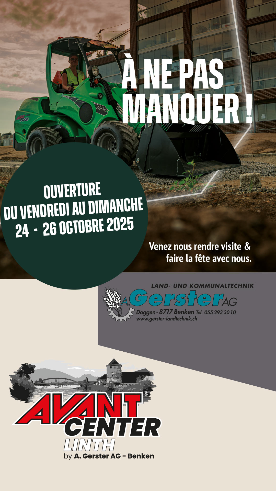 A. Gerster AG célèbre l'ouverture du Centre AVANT Linth du vendredi, 24. Octobre 2025 au dimanche, 26. Octobre 2025 ! Soyez présent lorsque les portes du centre AVANT Linth s'ouvriront officiellement !