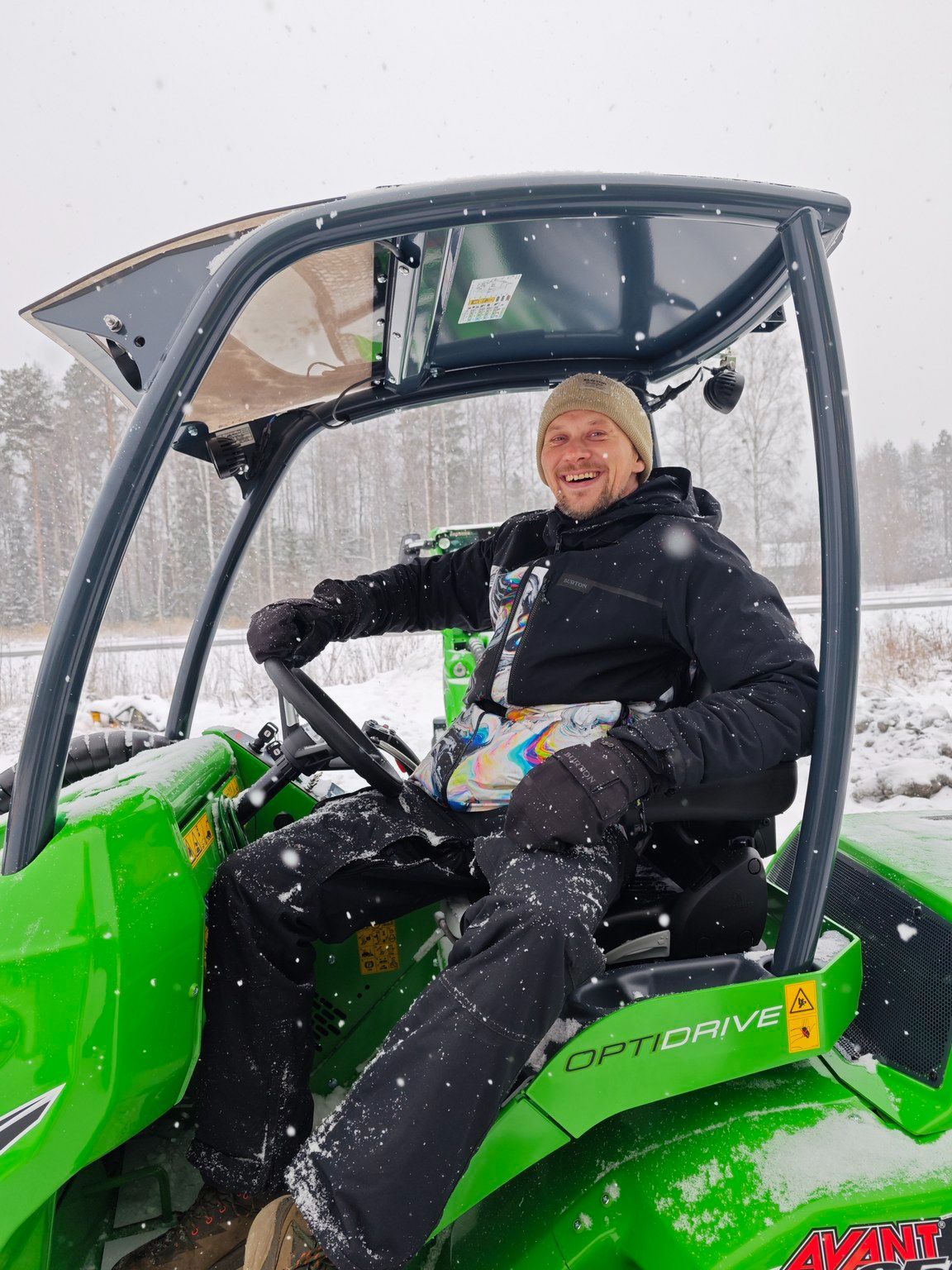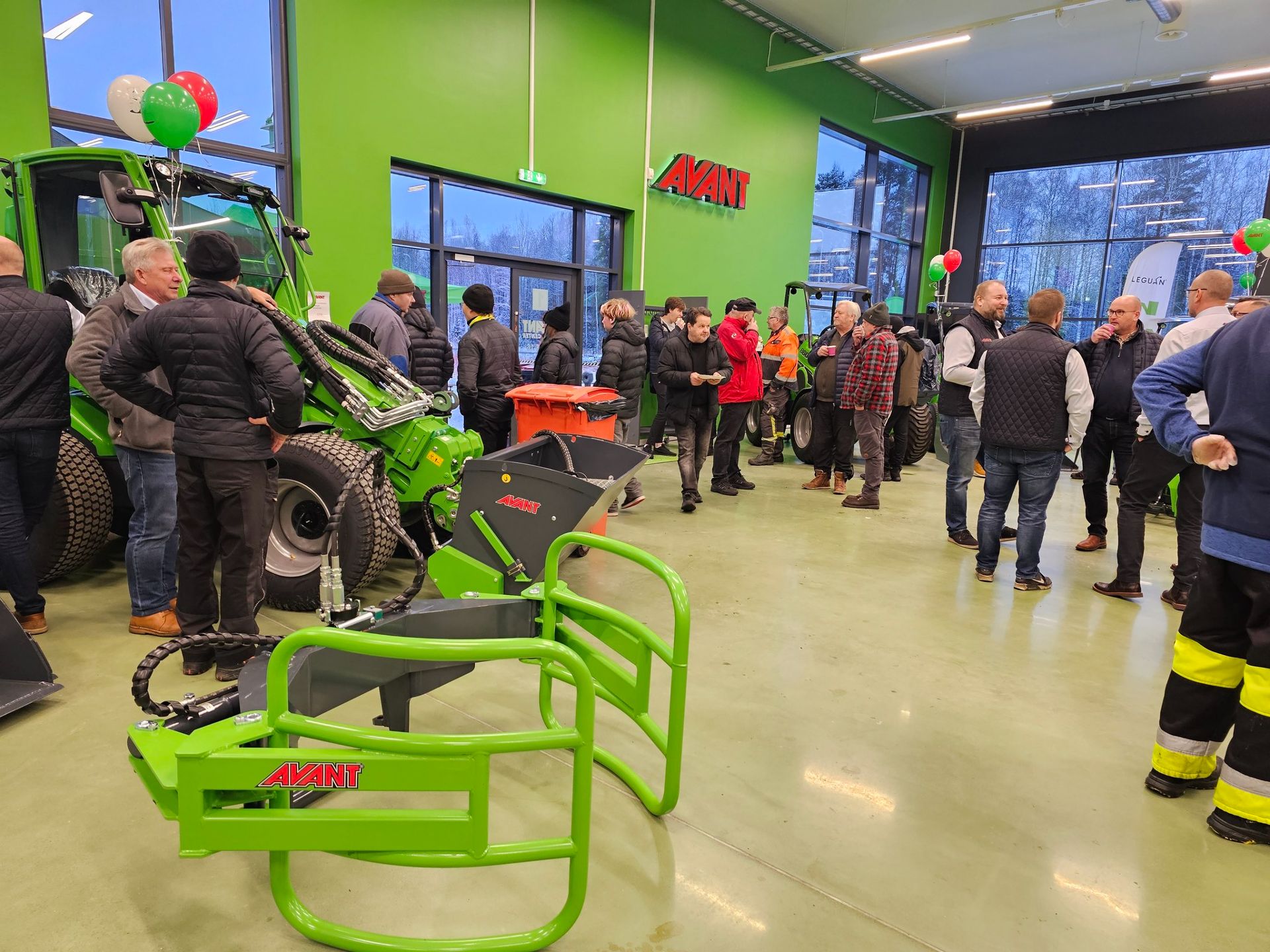 Avant-kuormaajat ja -työlaitteet olivat tietysti tapahtuman keskiössä, ja pihamaalla linkkukoneen parhaita ominaisuuksia esitteli tuttuun tyyliin demokuskimme Lauri ”Late” Sahlstedt, joka pyöritteli Avantin 650i-mallia ja nelitoimikauhaa murskekasalla taitavasti.